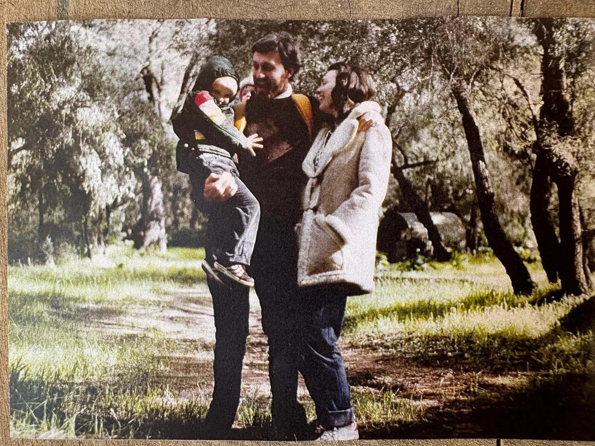 Peter with wife Jan and first child Christy on a bush walk in 1978.